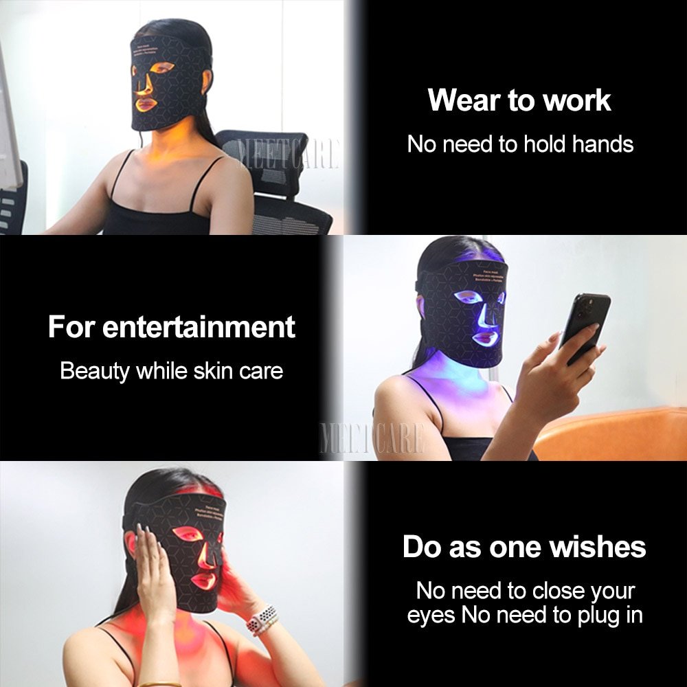 Mascarilla facial LED de 4 colores, Gel de silicona, SPA, terapia de luz roja para cara, cuello, luz de fotones, rejuvenecimiento de la piel, antiarrugas y acné