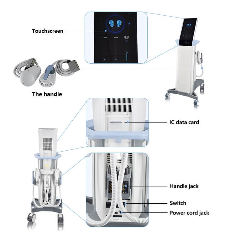 - Używane są 2 uchwyty jednocześnie, a intensywność płaskich i zakrzywionych uchwytów nadwozia jest oddzielnie kontrolowana, co pozwala na lepsze dostosowywanie leczenia.