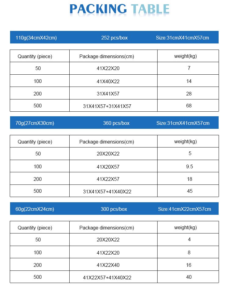 60g(S), 70g(M), 110g(L)