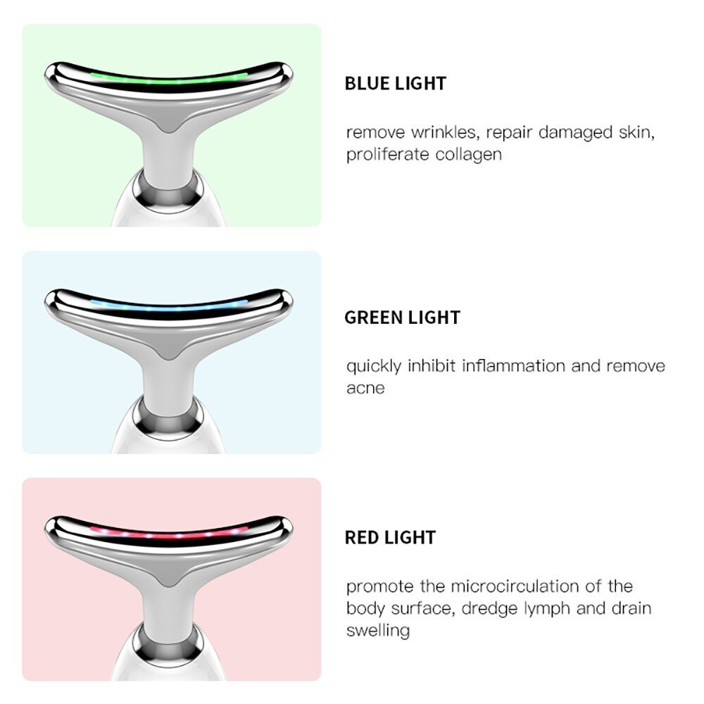 Neck Face Massager Beauty Device 3 Colors LED Photon Therapy Skin Tighten Reduce Double Chin Anti Wrinkle Remove Skin Care Tools- Free Training + Protocols & Videos