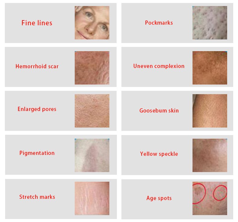 - Treats fine lines, wrinkles, acne scars, sun damage, rosacea, melasma, and stretch marks